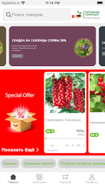 Питомник саженцев, Android platformunda yer alan bir alışveriş uygulaması olarak, 2500'den fazla farklı fidan seçeneği sunmaktadır. Uygulama, kullanıcıların çeşitli bitki türlerini kolayca bulmalarını ve sipariş etmelerini sağlar. Ürünler, çevre dostu koşullarda yetiştirilmekte ve sertifikalı olarak sunulmaktadır. Ayrıca, fidanların bir yıl garanti süresi bulunmaktadır; bu süre zarfında değişim işlemleri sorunsuz bir şekilde gerçekleştirilmektedir.